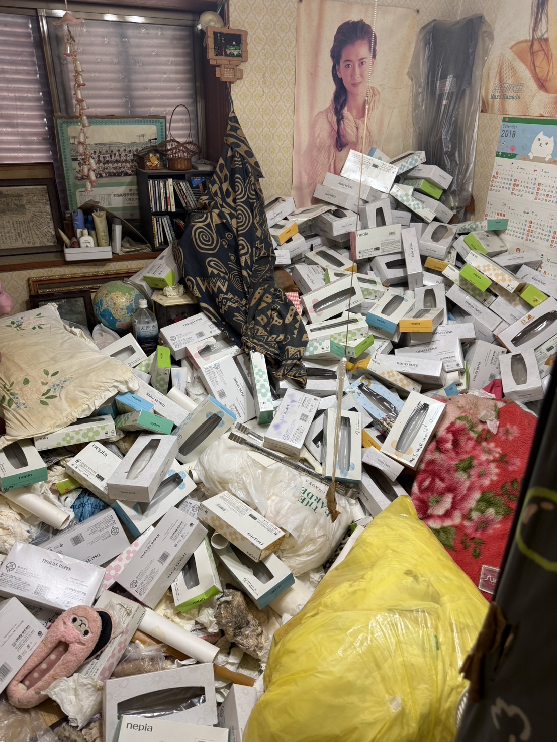 お部屋にはティッシュの空き箱が大量に積み重なり、