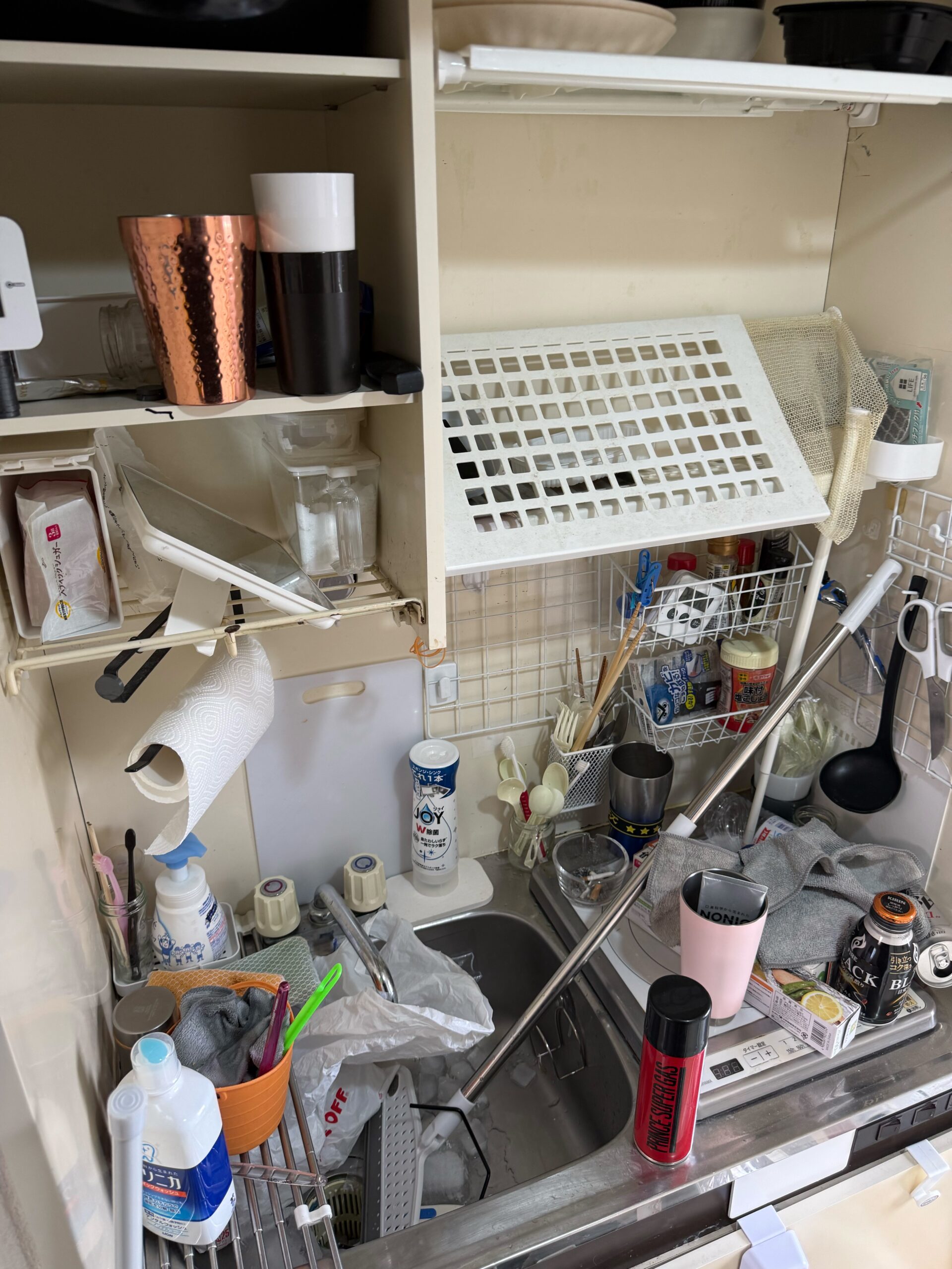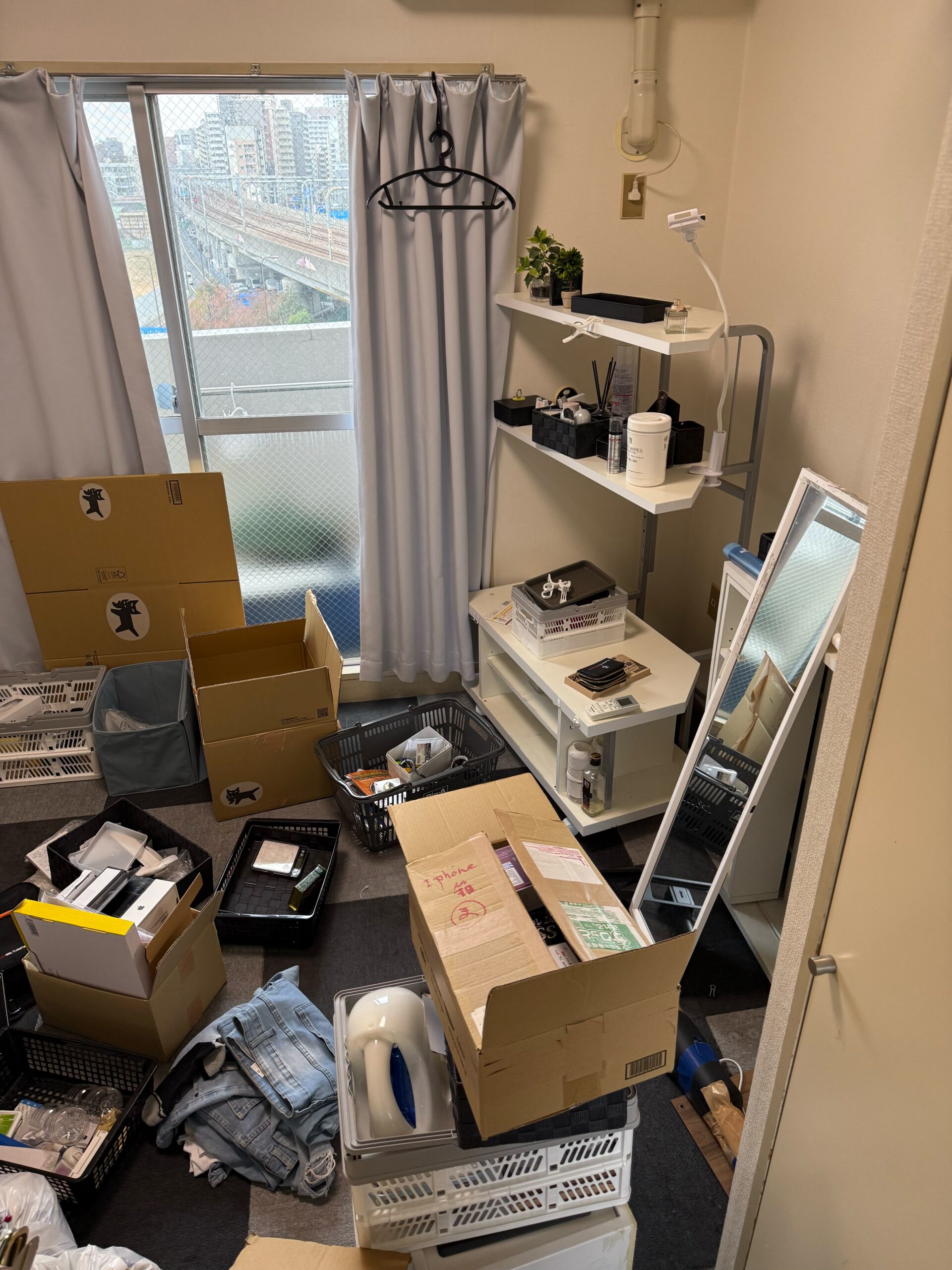 お部屋の中には、生活用品や家具、収納用品などが残されており、